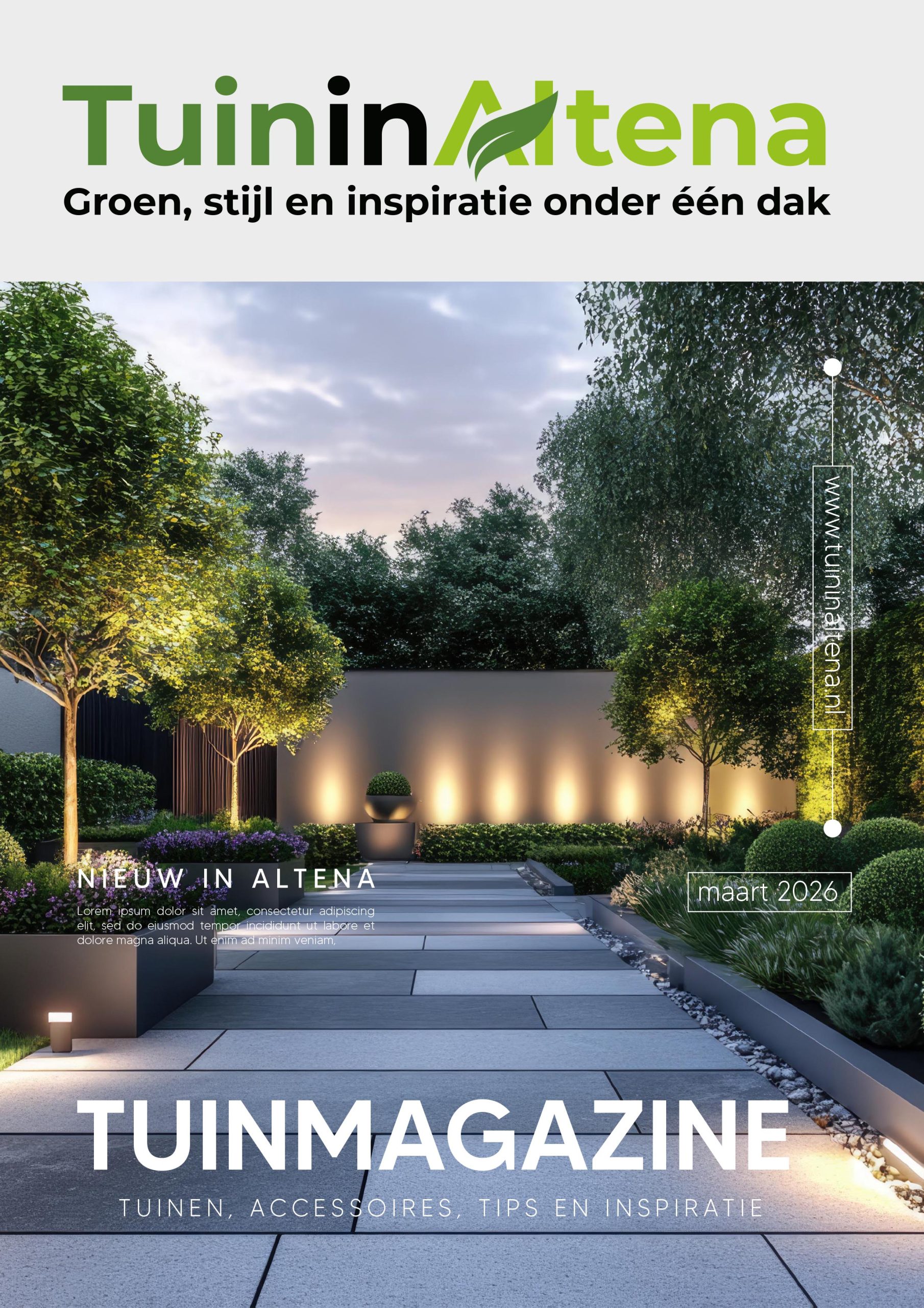 Tuin in Altena Magazines is dé regionale tuinbijlage die consumenten en tuinprofessionals in Altena en omgeving samenbrengt. Het magazine richt zich op het inspireren en verbinden van tuinliefhebbers en overnamespecialisten door middel van sfeervolle en aantrekkelijke content. De boodschap wordt primair overgebracht via verhalende advertenties die tekst en beeld harmonieus combineren, zodat de lezer volledig wordt meegenomen in de tuinwereld.