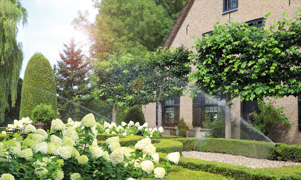 DVC Beregening verzorgt het ontwerp, aanleg en onderhoud van verzonken sproei- en beregening systemen. Met gebruik van uitsluitend professionele materialen van een select aantal merken, desgewenst inclusief automatiseringssets en regensensoren. Wanneer er niet gesproeid wordt, is er ook niets van de installatie te zien. Sproeiers komen op de waterdruk omhoog en zakken na het sproeien weer tot onder het maaiveld.